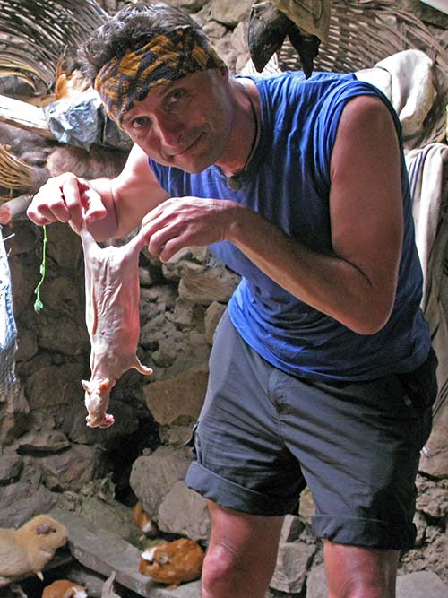 • Kurze łapki w zupie, świńskie ryje z rusztu, gigantyczne mrówki smażone na chrupko, świnki morskie pieczone w całości na patykach, termity w czekoladzie, krowie jelita z grilla faszerowane czymś dziwnym... Jednak wszystko to i tak lepsze niż przesłodzona kawa neska w szklankach ze słomką.